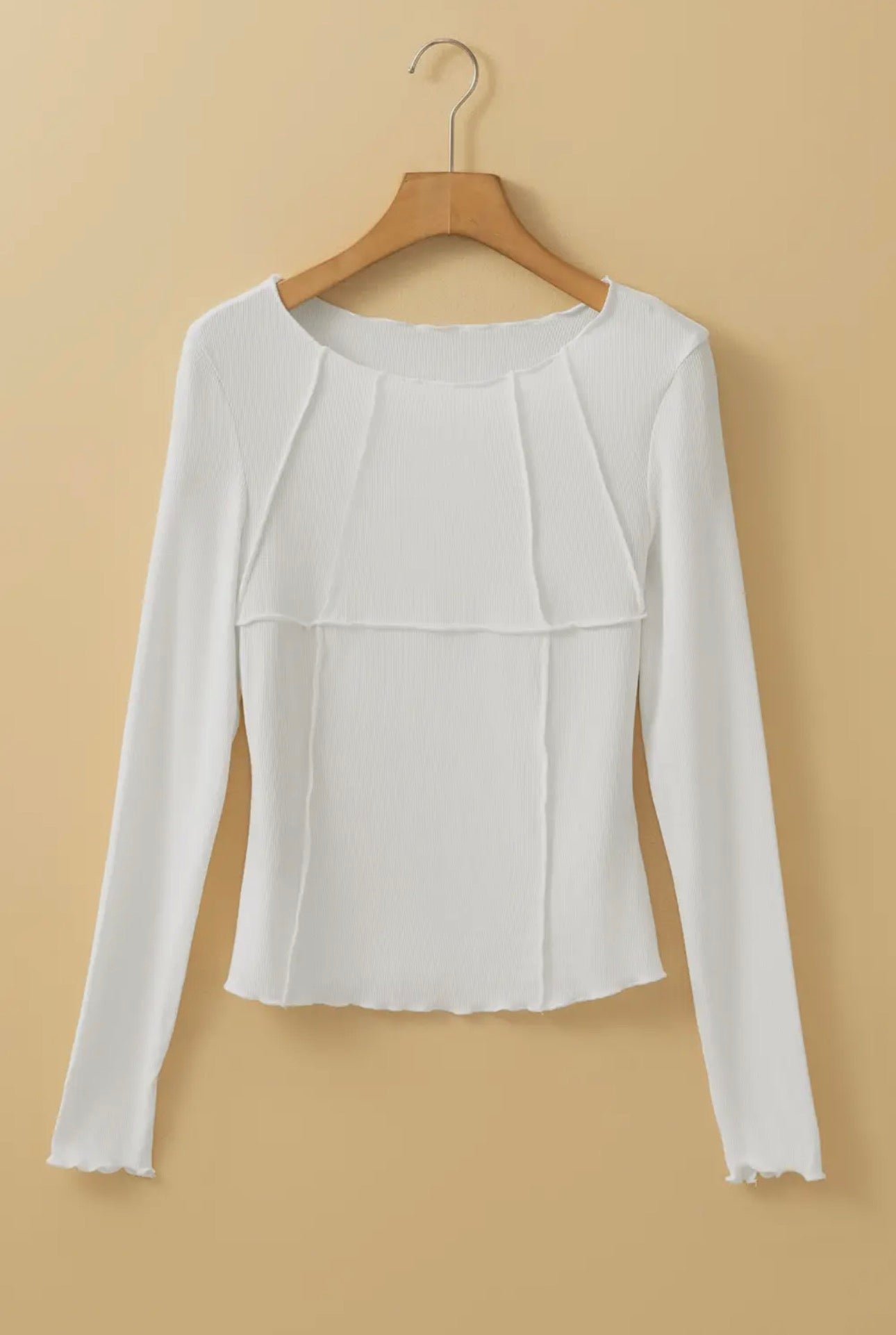 Ribbed knit fabric for a textured look and comfortable feel. Exposed seam details for a trendy and edgy vibe. Slim fit design to enhance your silhouette.