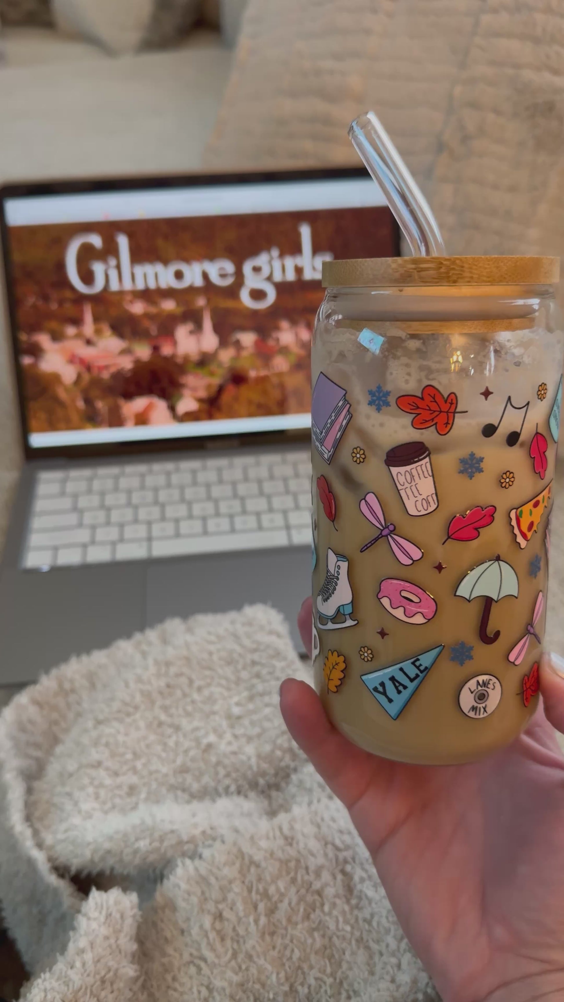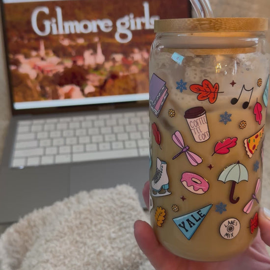 Gilmore Girls inspired UVDTF Glass Cup w/ Lid comes with plastic straw.